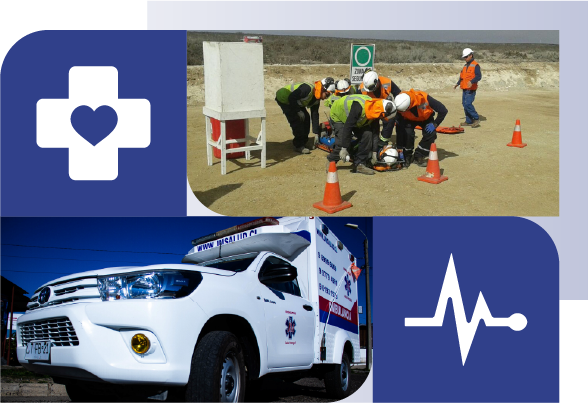 Empresa de salud con 30 años de experiencia en minería y 10 años en servicio público, que entrega atención en terreno con ambulancias equipadas, salas de primeros auxilios y profesionales certificados por el Minsal.